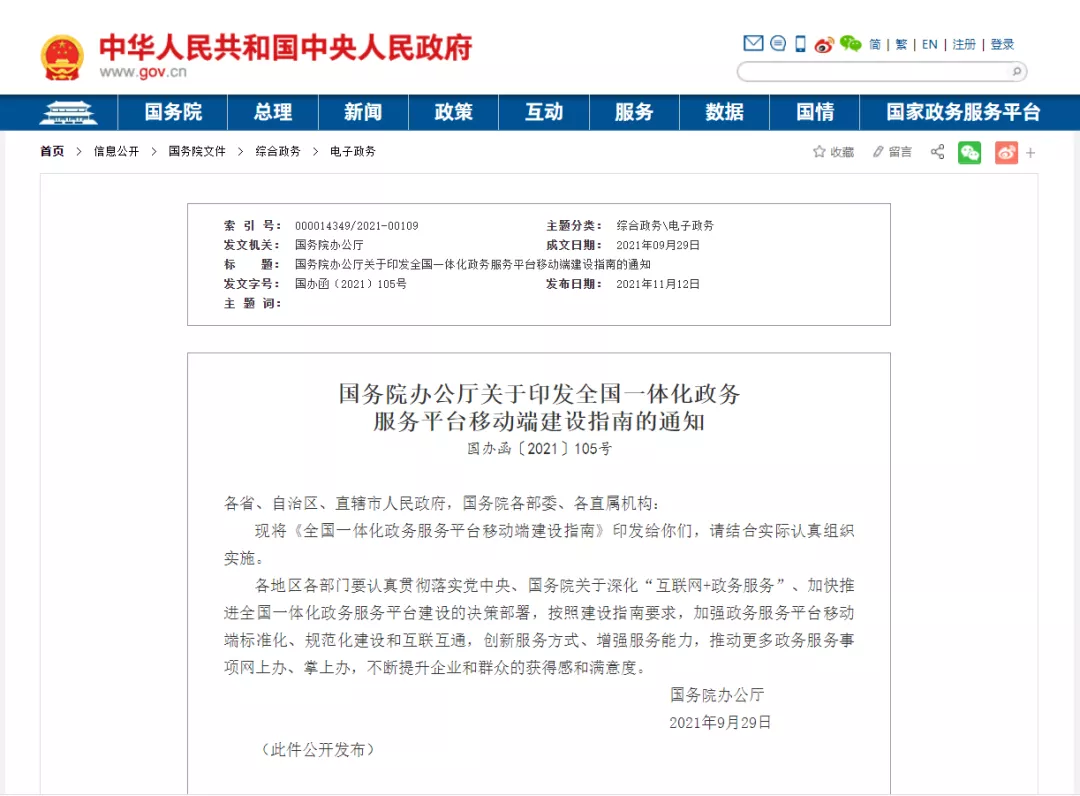 国务院印发|优化推进全国一体化政务服务平台移动端建设