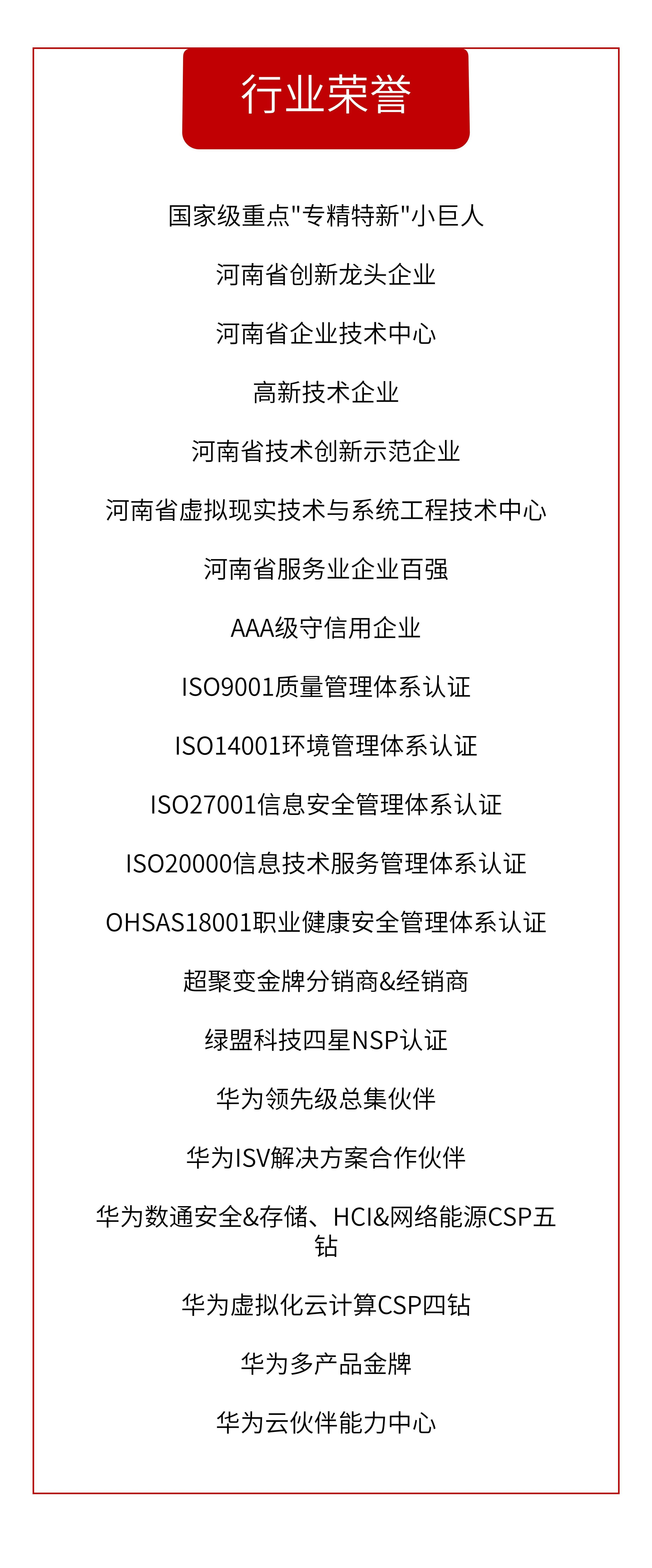众诚科技作为一家根植中原、面向全国的高新技术企业,坚持聚焦、专业、专注的发展理念,历经多年发展积累和转型沉淀,近年来坚持政务信创、数智企业、虚仿行业应用的数字化综合解决方案提供商的定位,以政务信创领域的信息化服务及软件开发、基于与华为生态深度合作的行业应用服务、虚拟仿真行业应用和自主软件产品开发为核心发展方向,为政务信创、智慧农牧、智慧教育等智慧城市细分领域提供集方案咨询、方案设计、软件系统开发、系统集成、云化转型及运维运营等于一体的信息系统集成解决方案,实现资源整合及业务协同,打破数据孤岛,助力客户数字化转型升级。