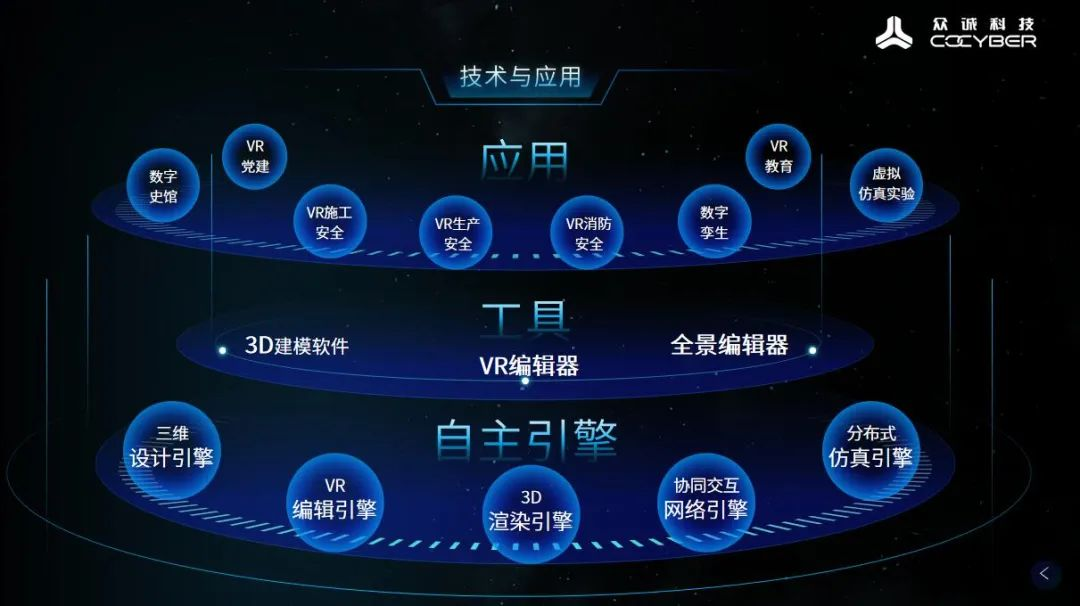 众诚虚拟仿真多年扎根虚拟现实/虚拟仿真领域,着力于自主研发,结合深厚的项目经验,形成了完善的产品-解决方案体系。在数字化战略的推动下,以VR/AR/MR、人机交互、视景仿真、数字孪生、人工智能信息等技术为载体,为教育、工业、医疗、军工等领域赋能,服务区域经济发展,助力产业创新升级,实现数字化、智慧化转型。