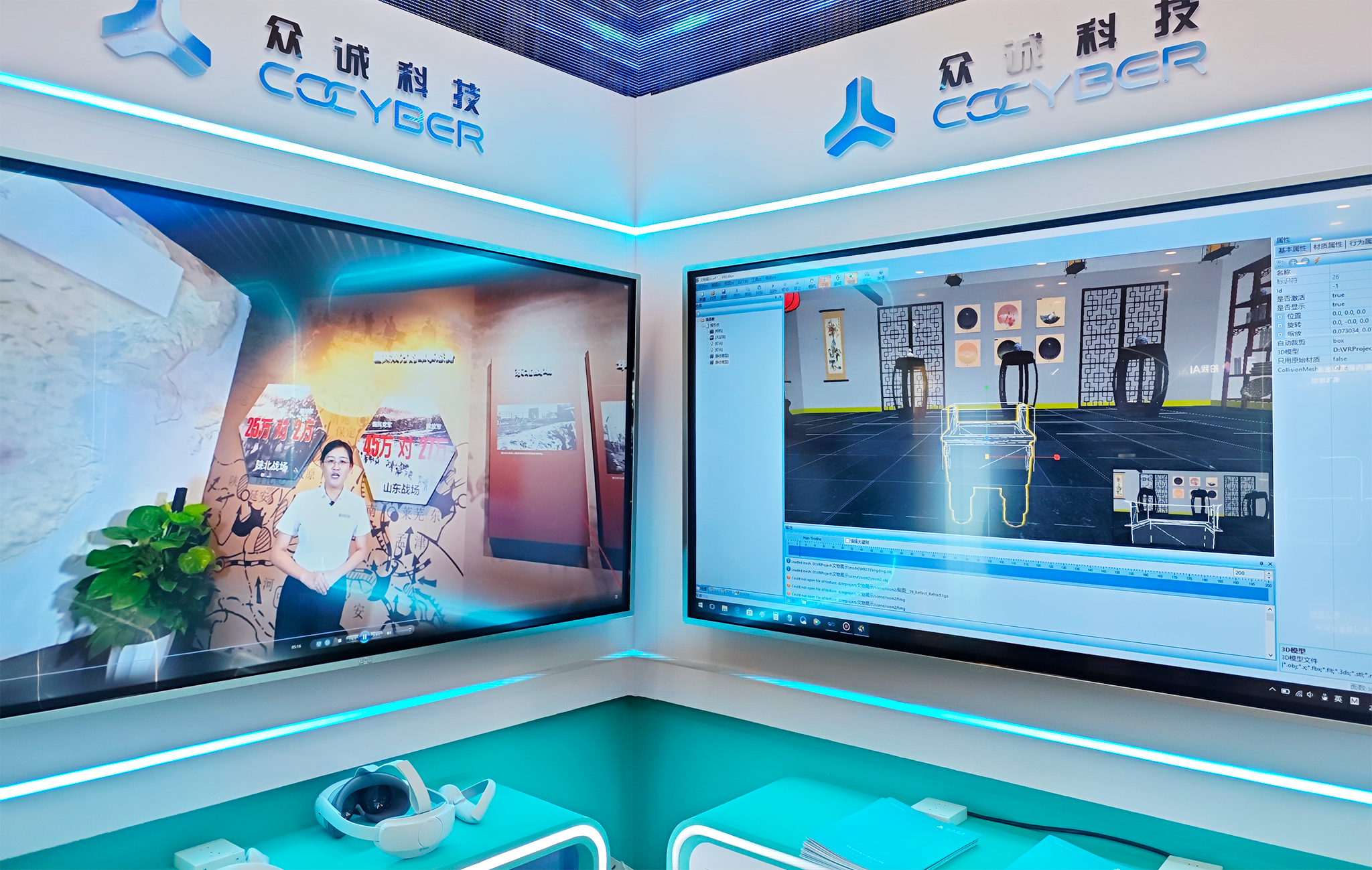 会上,众诚科技重点展示了核心自研成果国产化VR编辑平台。该平台底层基于OpenGL和Direct3D独立开发,不依赖第三方工具,实现了全链条技术自主可控。平台最大的优势在于其“免编程、可视化”的极简操作逻辑,通过素材自由拼装,能将复杂VR内容的开发效率提升数十倍,让非专业开发者也能快速创作。目前,该平台已在党建、教育、工业、文旅等十余个行业落地,开发了上百款虚拟仿真软件,技术实用性与跨行业适配性得到了充分验证。